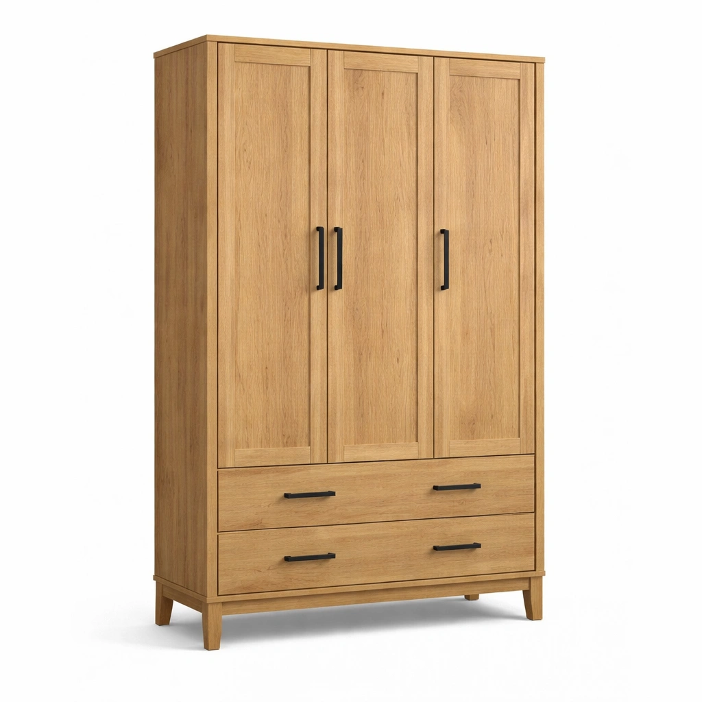 Armario de madera maciza de roble con puertas y cajones