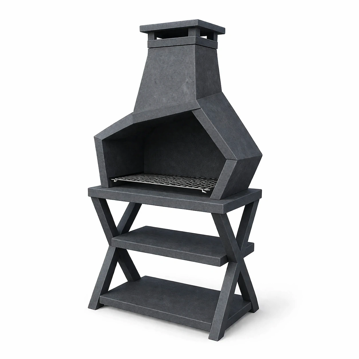 Barbacoa de cemento para exterior con parrilla de acero inoxidable antracita