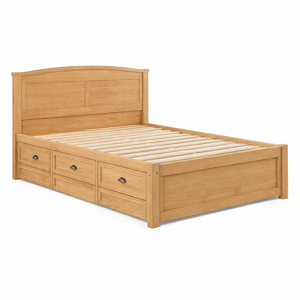 Cama con almacenamiento de madera de roble con cajones