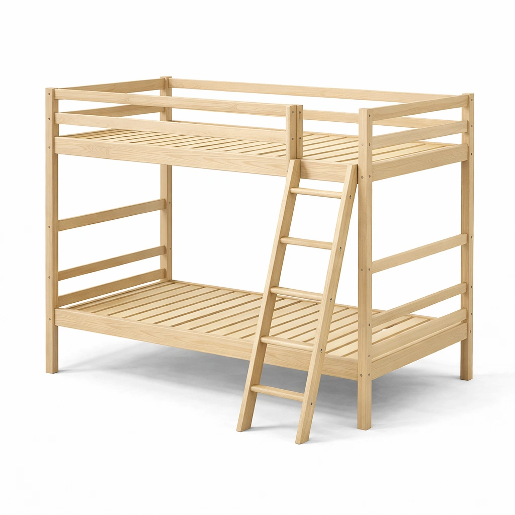 Litera de madera de pino con escalera lateral