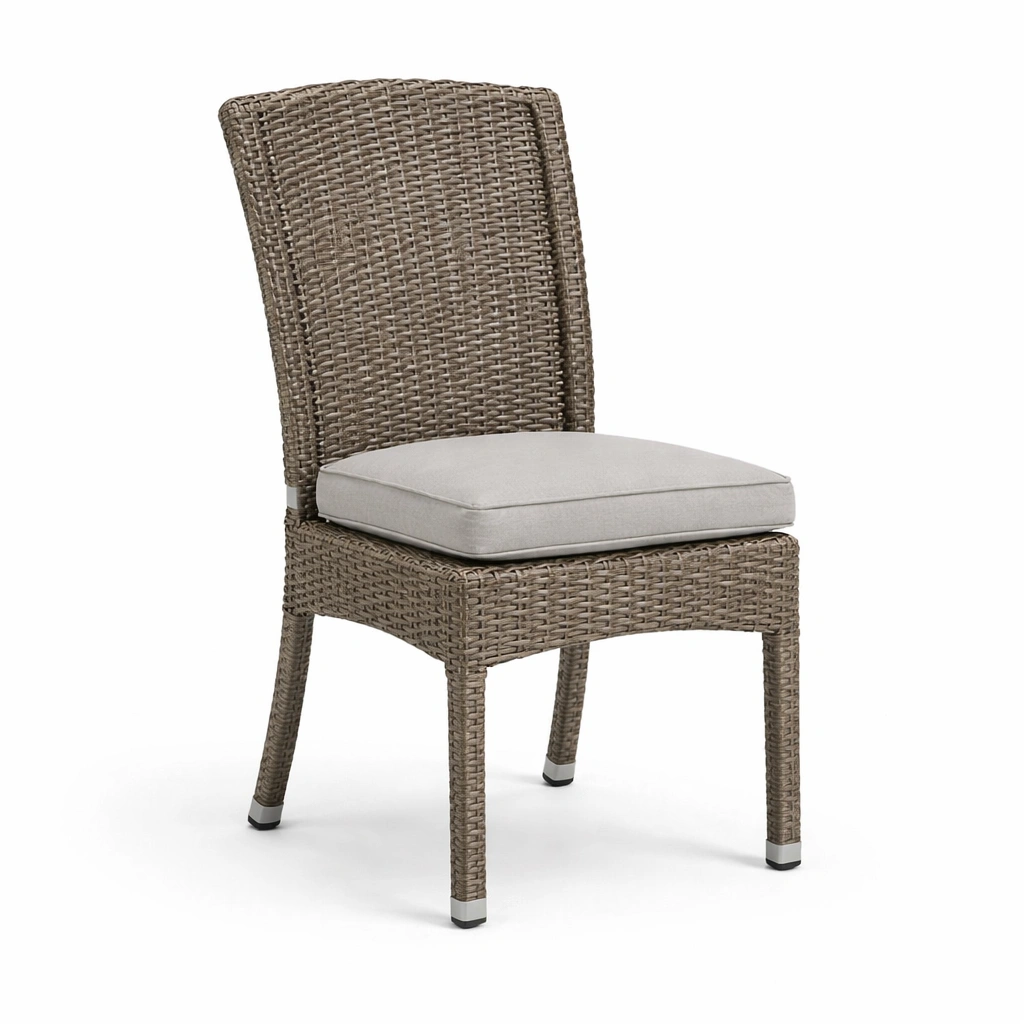 Silla de comedor de ratán sintético marrón con cojín de poliéster gris