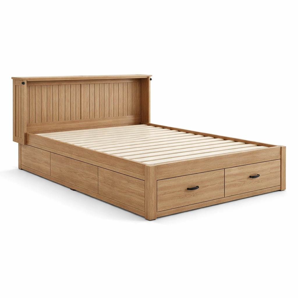 Cama con almacenamiento de madera contrachapada