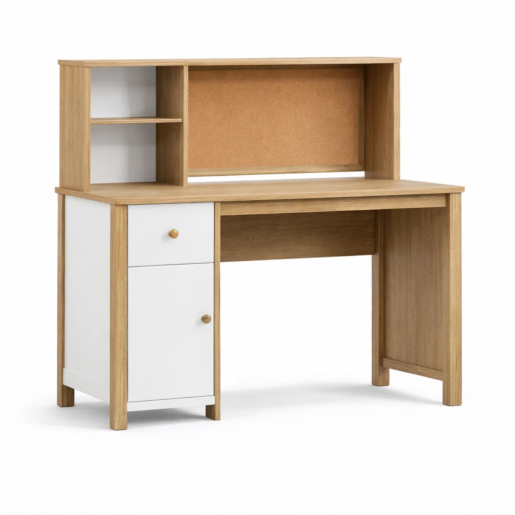 Funcionalidad: Espacio de almacenamiento con estanterías y panel de corcho
